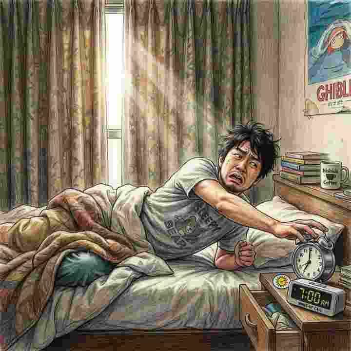 • 6:00 アラーム3回目 → 止めて二度寝